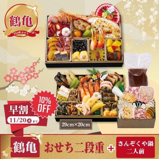 【予約専用】おせち二段重(鶴亀)+さんぞくや鍋2人前 早割10%引